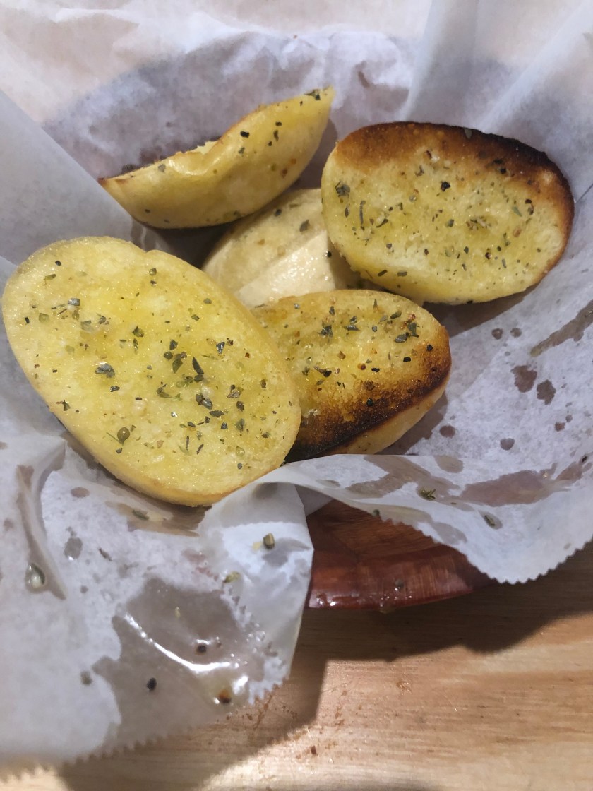 First things first, before you even get your drinks at Big Ed’s your server brings you this little bowl full of dinner rolls, sliced in half and prepared in the style of “Texas Toast”. Toasted to perfection, oily, and replete copious amounts of garlic; these things were more addictive than any opiate I’ve ever encountered! I had to be careful as I still had an intermezzo in the form of a salad on its way.