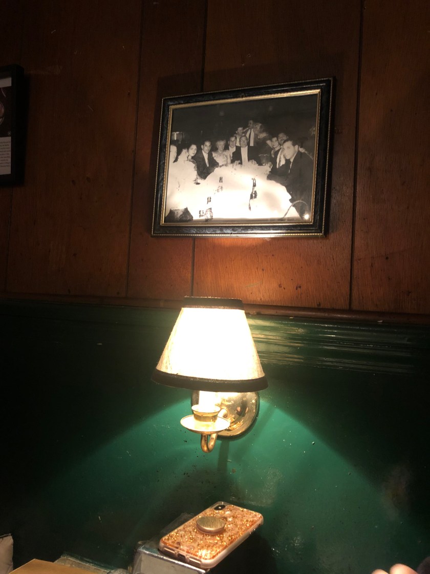 It doesn’t look like much on the outside and the same is true of the inside. Opened in 1932, it would appear that much hasn’t changed in that time. It’s dimly lit, the walls are all wood panel, and the booths are hard wood and painted the same color green they were for the 30+ years I’ve been coming here.